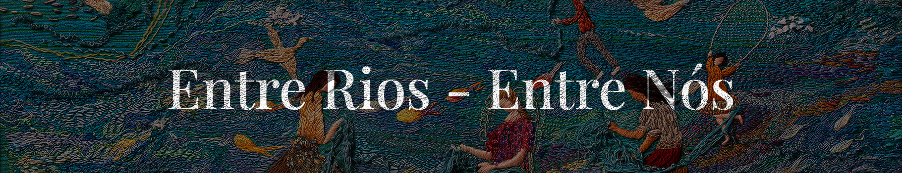 Estamos todos entre rios – alguns tão visíveis e encachoeirados, outros subterrâneos porque ficaram nas profundezas. Ribeirinhos, acreditamos sempre é tempo de bordar água e vida no coração. Acreditamos ainda que celebrar a água nossa de todo dia é celebrar a vida. Por isso águas e cerrado estão muito presentes em nossas criações e em ligação estreita com a preservação das nascentes e cursos d’água.